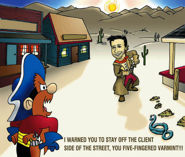 RESPONSIBILITY: An Art Director was leaving the company to work on the "client side". Also, his favorite character is Yosemite Sam. This card was designed for his farewell party.